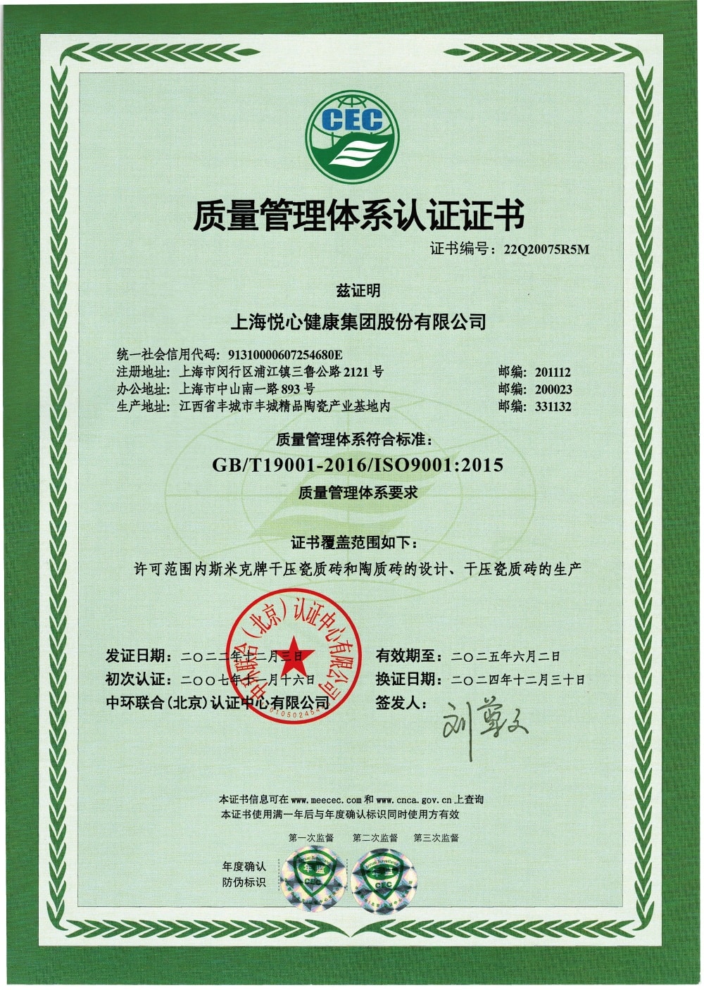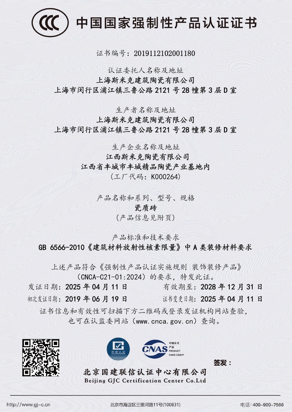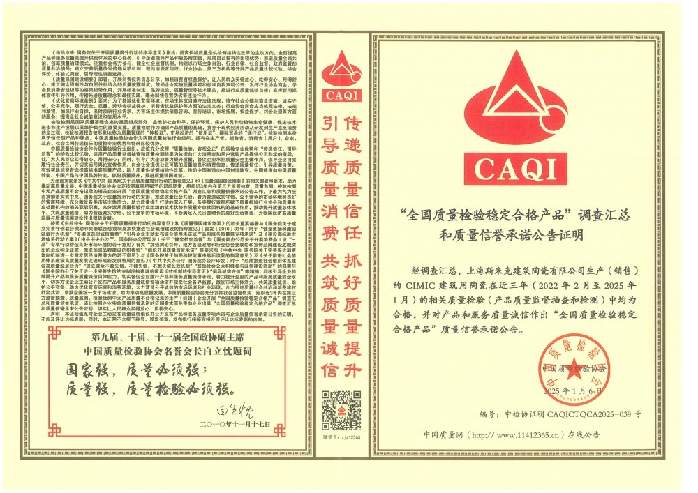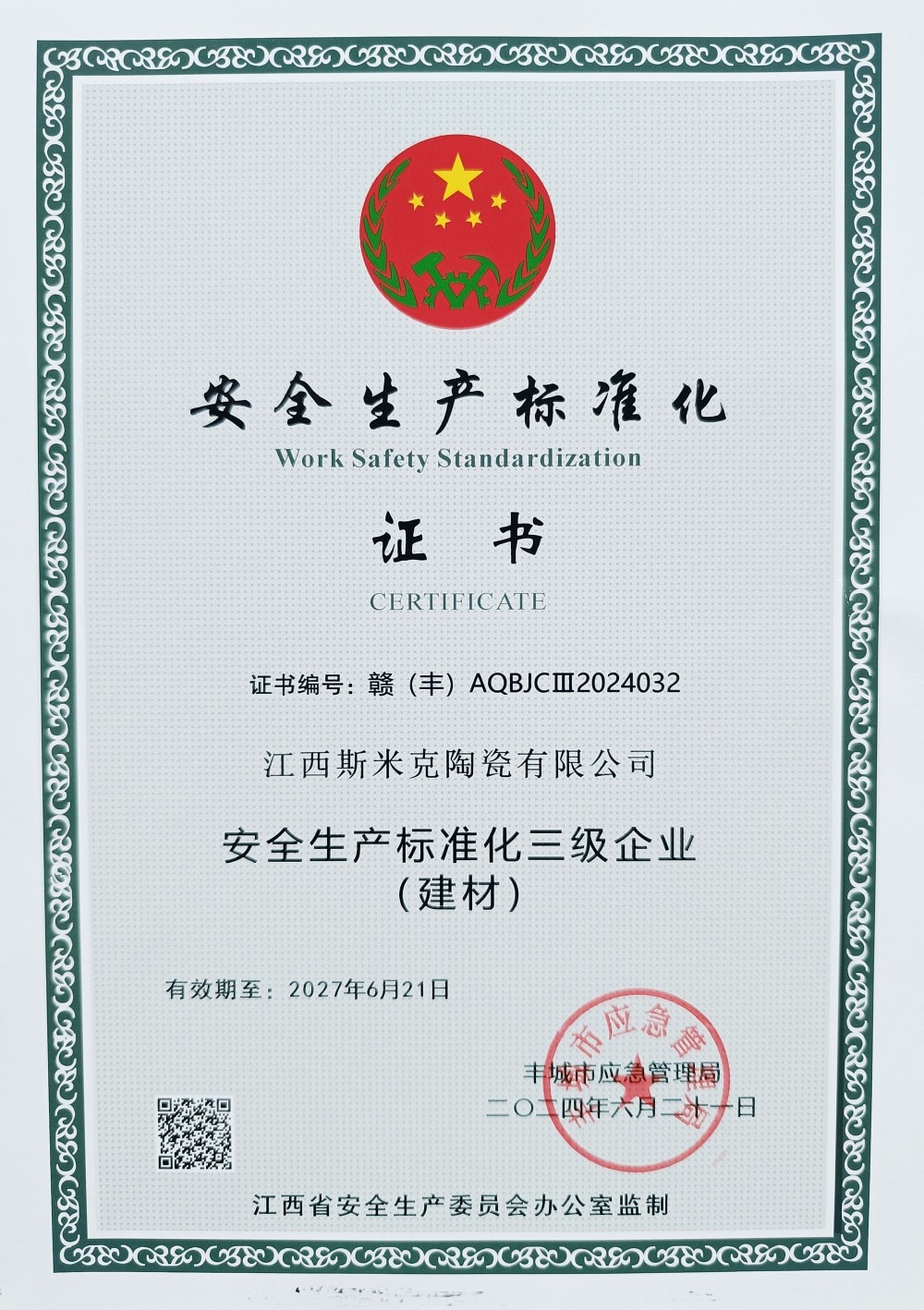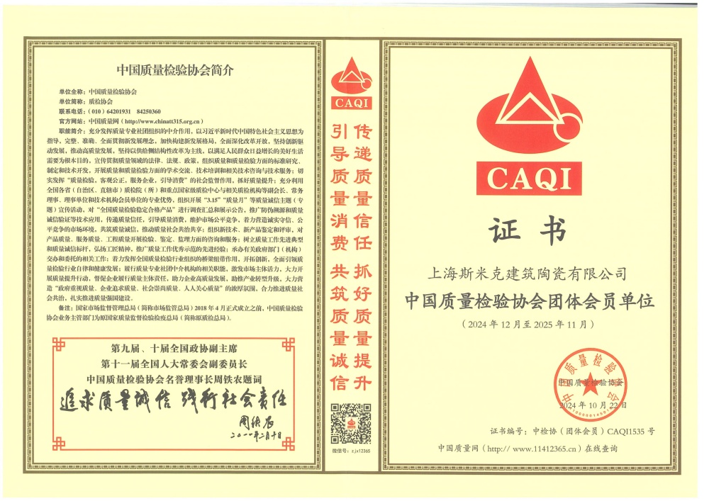 Aug China Association for Quality Inspection’s “Product of Reliable Quality” certification, “National Ceramics Brof Distinction Superior Quality” certification, “National Ceramics Company of Distinction Superior Quality” certification