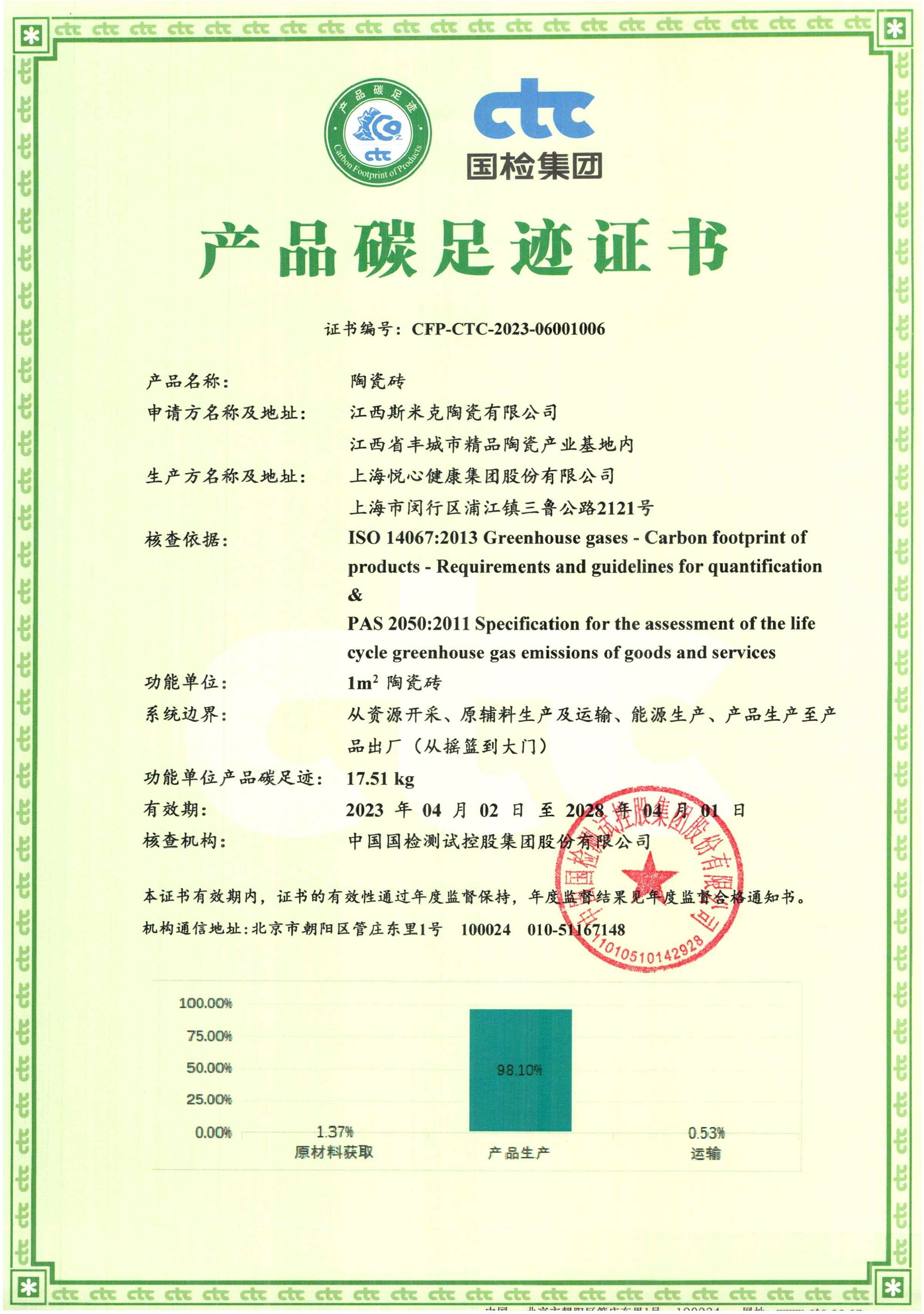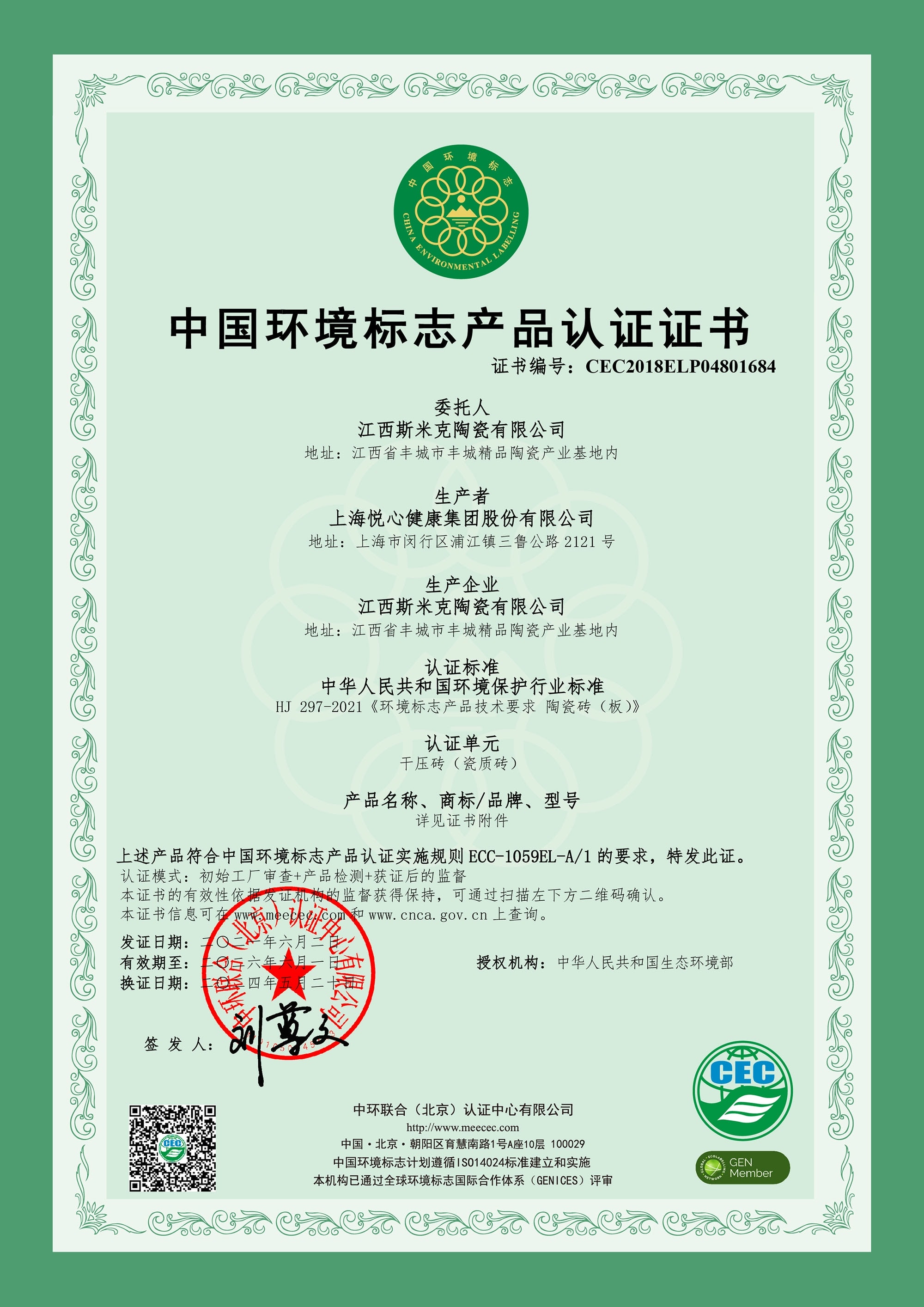 6月 獲中國建材檢驗認證集團股份有限公司(國檢集團)“中國綠色產品認證證書”(有效期至2026/6/9)